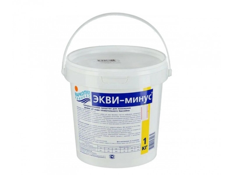 ЭКВИ-минус порошок (рН-минус) содержит в своем составе концентрированные кислые гранулы и изготавливается при помощи бисульфата натрия.