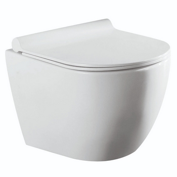 Унитаз подвесной Azario Geno 490х360х360 безободковый, с ультратонким сиденьем мироклифт, белый